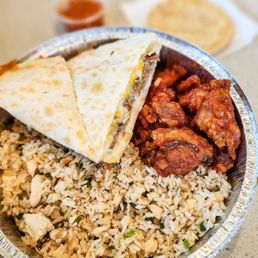 I was staying at the Hilton Tapatio for a few nights, and one of those nights, I went out for something to eat. I remembered that Chino had moved locations awhile ago, and it was pretty close to the hotel. I stopped on by. I went with a 2 item bowl with black beans, jerk fried rice, jerk chicken, and jade red chicken in a quesadilla. Water to drink, and of course the snickerdoodle cookie. How was it? Still as good as before. Everything just works! I mix my fried rice with the black beans and go to town. Portion sizes are still great, jade red chicken is still sweet and crunchy and delicious, jerk chicken has some nice spice to it, and the cookie is always a nice finishing touch! I enjoyed my meal so much, that I took my Mom back here about a week later. Chino Bandido, twice in one week. How lucky am I? Lol! This place has always been great, and still is! Bomb food and huge portions! Love it!